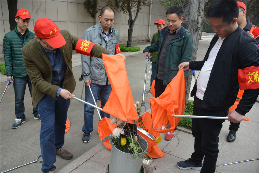 三、開展“倡議文明緬懷,減少廢棄污染”拾撿垃圾志愿服務(wù)活動。緬懷先烈活動結(jié)束后,市建投公司志愿者們在烈士陵園內(nèi)開展“倡議文明緬懷,減少廢棄污染”拾撿垃圾志愿服務(wù)活動。每位志愿者都手持垃圾鉗,認真將散落在紀念碑前以及隱藏在雜草中的廢棄鮮花、飲料瓶、紙張等垃圾拾撿起來放入提前準備好的垃圾袋中。活動持續(xù)一個小時,志愿者們在祭奠先烈的同時以自己的實際行動表達崇敬之情,并倡導(dǎo)以獻一束花、敬一杯酒、植一棵樹、清掃墓碑等方式寄托哀思,將祭拜逝者的傳統(tǒng)習(xí)俗以更加環(huán)保、健康、安全、文明的方式表達,營造文明祭祀的良好氛圍。