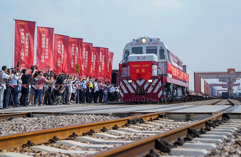 “上海號”中歐班列從上海首發,駛向德國漢堡(9月28日攝)。新華社記者 丁汀 攝